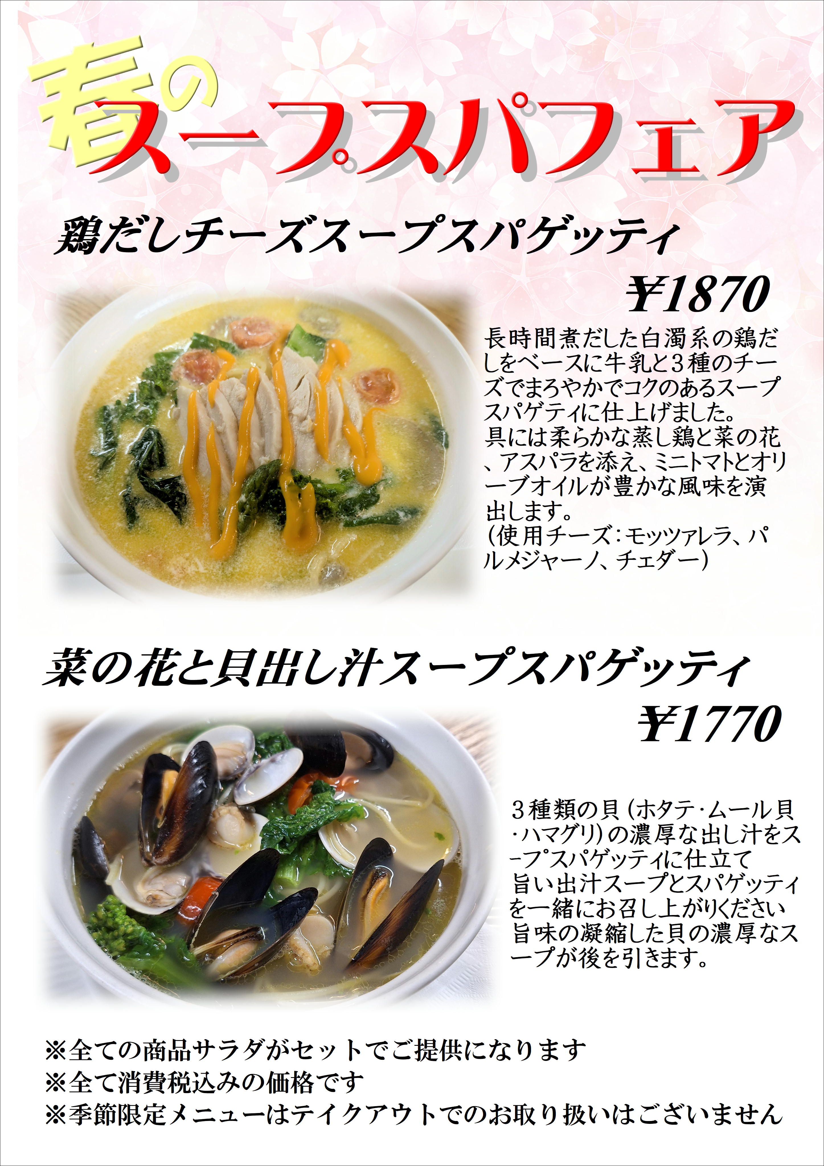 今年の春メニューはスープスパゲッティーフェア!